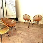 Denna lägenhet på 30 m^2 har uteplats, kokvrå och mathörna i varje rum. Några rum har en uteplats. Dunkuddar och sängkläder tillhandahålls. Det finns duschkabin och separat toalett för din bekvämlighet.